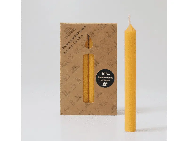 12 bougies 10% cire d’abeille – Ambre – Grimm’s