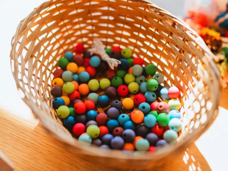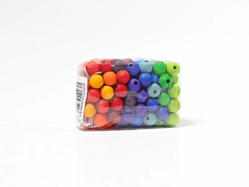 Les 120 petites perles en bois colorées sont l’un des matériaux de jeu les plus fondamentaux pour les enfants. Pendant l’enfilage, la coordination œil-main est stimulée et la motricité fine est entraînée. Ces petites perles en bois colorées sont offertes en 12 couleurs de l’arc-en-ciel, s’harmonisant parfaitement avec celles de le Grand arc-en-ciel en bois – Grimm’s et offrant plein d’opportunités d’association de couleurs avec d’autre matériel polyvalent aux couleurs.