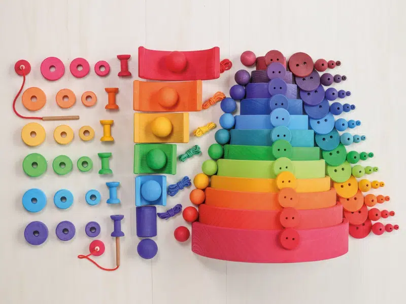 24 Anneaux de construction arc-en-ciel en bois – Grimm’s