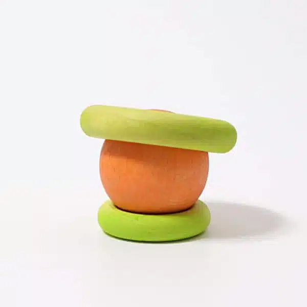 Cet ensemble de Grimm’s contient 24 anneaux en deux tailles différentes et aux 12 couleurs de l’arc-en-ciel. Ces anneaux permettent le développement de la pensée mathématique en valorisant le tri, le classement, le regroupement et les associations par couleur. Les anneaux permettent de développer la motricité fine en les enfilant, les empilant ou en créant différents jeux. Ils valorisent aussi la correspondance un à un en les jumelant par paire ou en les utilisant avec d’autres « loose parts ».