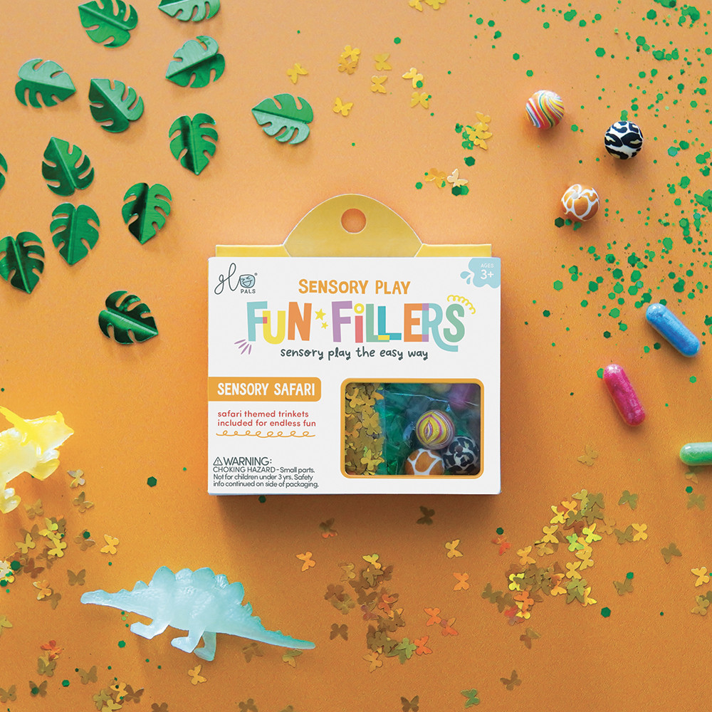 Les Fun Fillers sont des assortiments d’accessoires sensoriels thématiques conçus pour enrichir instantanément une activité de manipulation. Ils transforment un bac sensoriel, un bocal sensoriel, une matière à toucher ou un support lumineux en une expérience visuelle et tactile stimulante. Les Fun Fillers s’utilisent aussi avec le Bocal de jeu sensoriel, un bocal lumineux, verrouillable et antifuites qui permet de créer un univers mobile, rassurant et personnalisable. En y ajoutant quelques éléments des Fun Fillers, l’enfant peut composer son propre monde sensoriel, l’observer dans le calme et l’emmener partout.