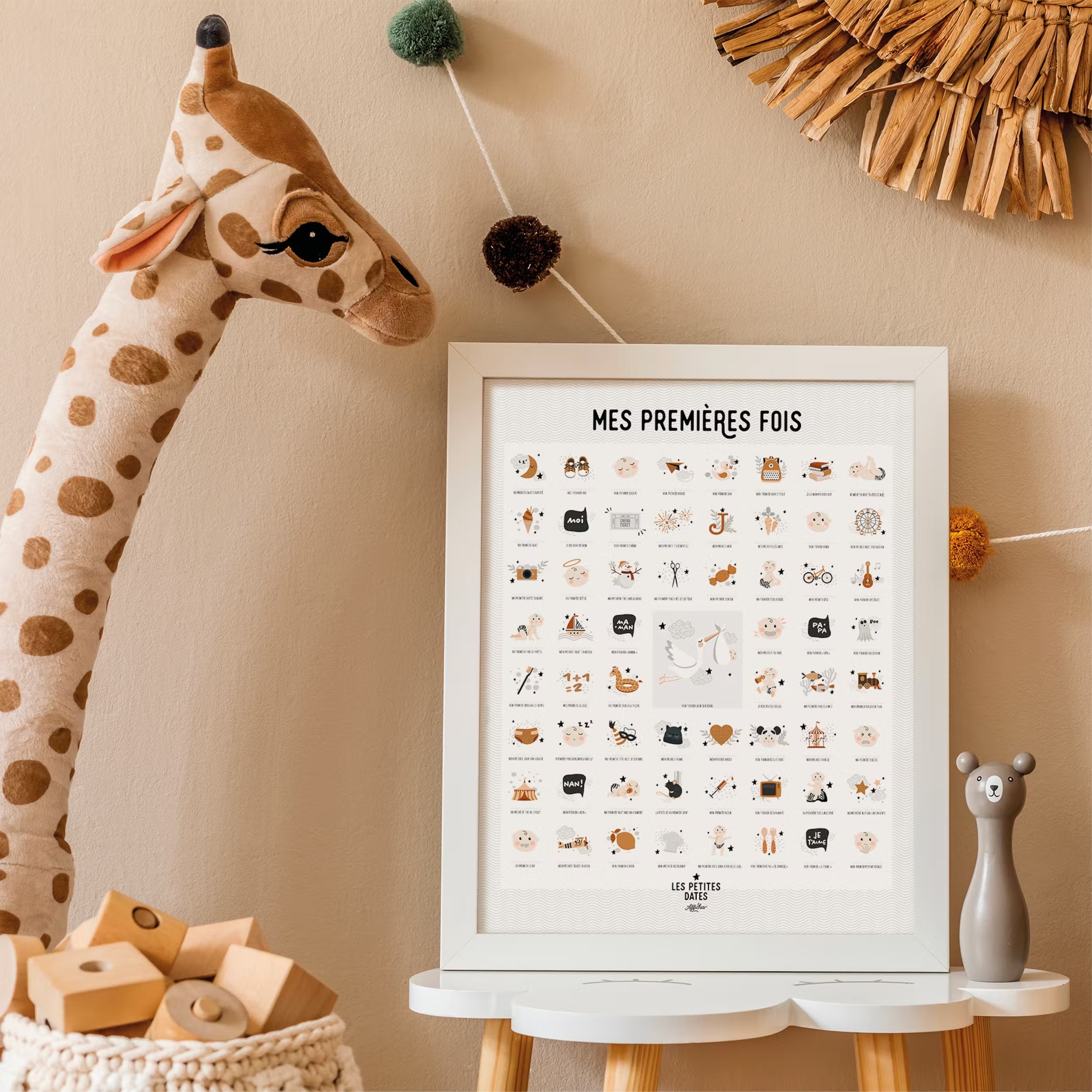 Les Petites dates imagine et conçoit des affiches avec amour en Bretagne. Elle sont vendues avec un encrier et un tampon pour dater tous les jolis moments de vie, les petites et les grandes découvertes des enfants dès la naissance. Un joli cadeau à offrir ou à s’offrir lors d’une naissance ou d’un anniversaire.