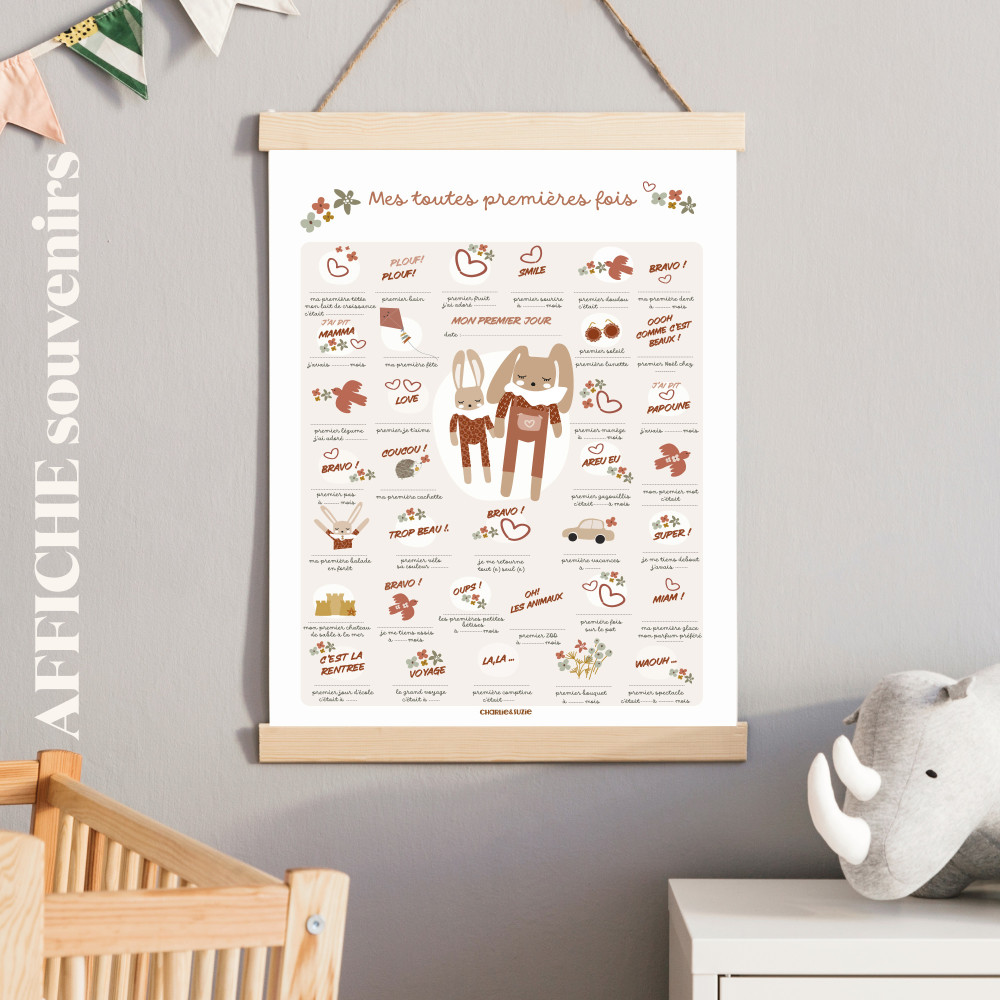 Plongez dans la magie des « premières fois » avec l’Affiche Lapin Graou, une création tendre et colorée, fabriquée avec soin en France. Chaque détail célèbre les moments uniques de votre enfant : premiers pas, premiers mots, premières découvertes. Facile à poser sans outils, elle apporte une douce poésie à la chambre, transformant chaque instant en un précieux souvenir à chérir. Tampon non vendu avec