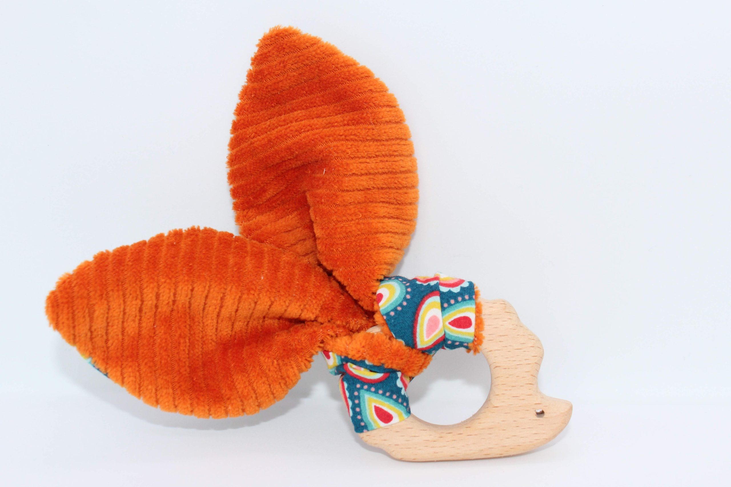Anneau de dentition en forme de hérisson, avec ses petites oreilles en tissu . Cet accessoire ludique et réconfortant accompagnera bébé dans ses 1ers mois.