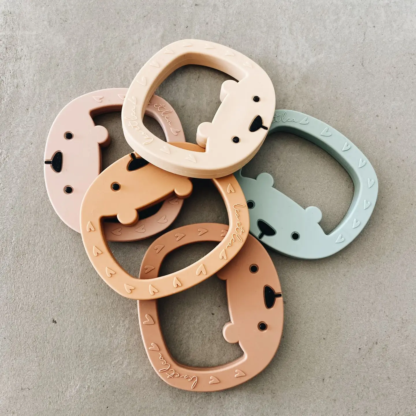 Fabriqué en silicone de qualité alimentaire, notre anneau de dentition pour petit ours offre des textures intéressantes des deux côtés pour une mastication et une exploration infinies. Pour vous assurer de ne rien laisser sans elle, utilisez la découpe pour fixer un clip. * Design original de Leo et Lea® * Nettoyage facile à l’eau savonneuse * Pour soulager la douleur liée à la poussée dentaire, laissez l’anneau de dentition dans de l’eau glacée * Sans BPA, PVC, phtalates, plomb et cadmium * Testé CE * Conçu en France