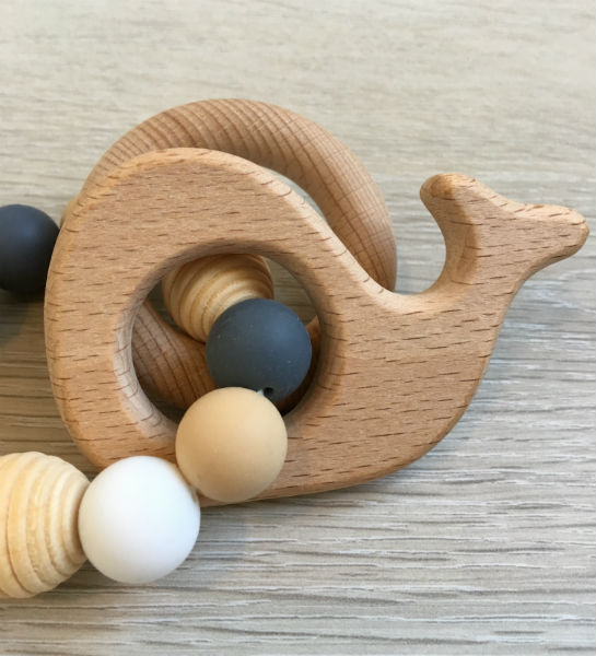 Anneau de dentition Perles bois et silicone Anneau Baleine