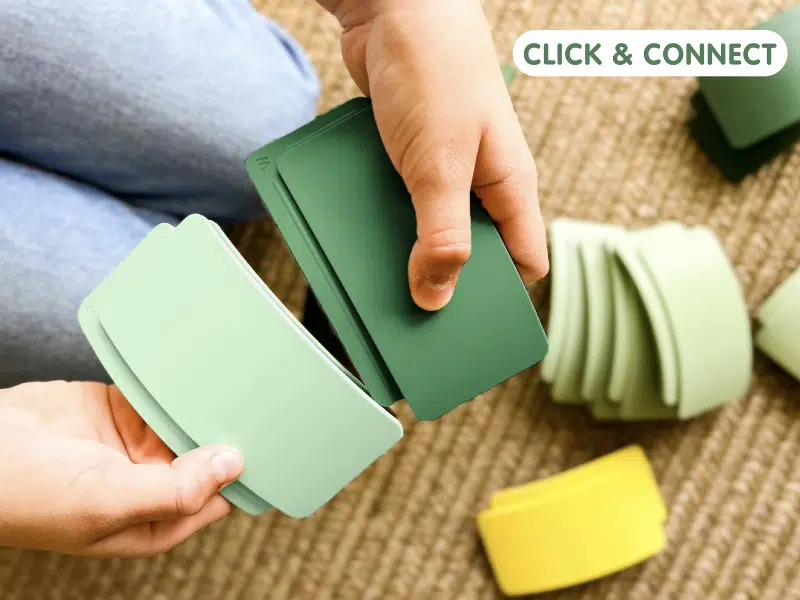 Chaque pièce peut être »cliquée » et combinée de multiples façons, ouvrant la porte à des constructions toujours différentes. Les pièces »cliquent » entre elles et tiennent bien ensemble durant le jeu, ce qui encourage l’autonomie, l’exploration et la coopération.