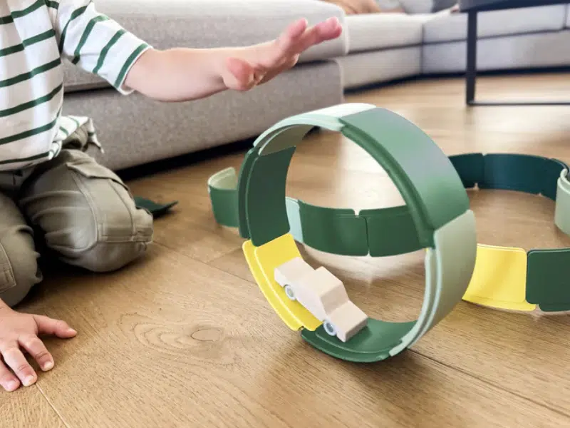 Chaque pièce peut être »cliquée » et combinée de multiples façons, ouvrant la porte à des constructions toujours différentes. Les pièces »cliquent » entre elles et tiennent bien ensemble durant le jeu, ce qui encourage l’autonomie, l’exploration et la coopération.