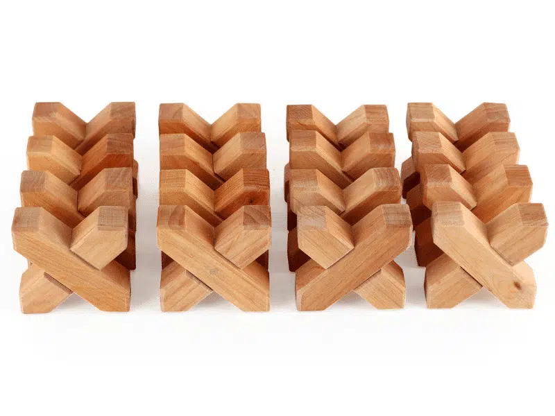 Cet ensemble de blocs en X de Bauspiel en contient 16. Ils peuvent être empilées pour construire et créer des combinaisons infinies. Osez les mélanger avec vos blocs de construction Grimm’s,