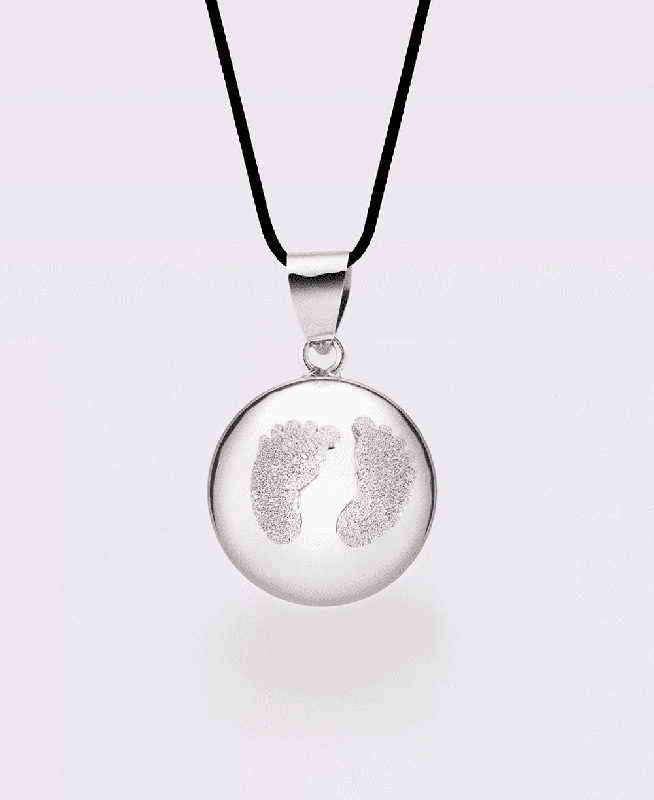 Un magnifique bola de grossesse Ce joli pendentif recouvert de rhodium est décoré de petits pieds en poudre de diamant : Un avant-goût de ceux de votre bébé ! Ce bola de grossesse recouvert de rhodium et poudre de diamant saura mettre en valeur la future maman ! En effet, la matière précieuse du rhodium mélangée aux petits pieds décoratifs en poudre de diamant forment un parfait mélange de sobriété et d’élégance. Le bola de grossesse est le bijou incontournable de la femme enceinte : En plus d’être un accessoire de mode pour la grossesse, il sera très utile pour…