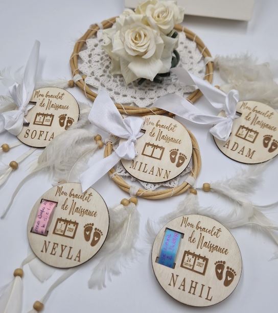 Bracelet de naissance gravé.