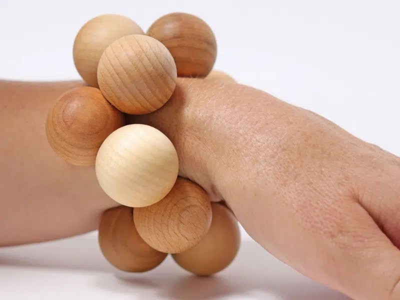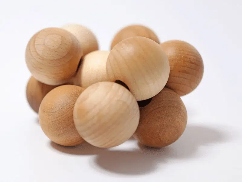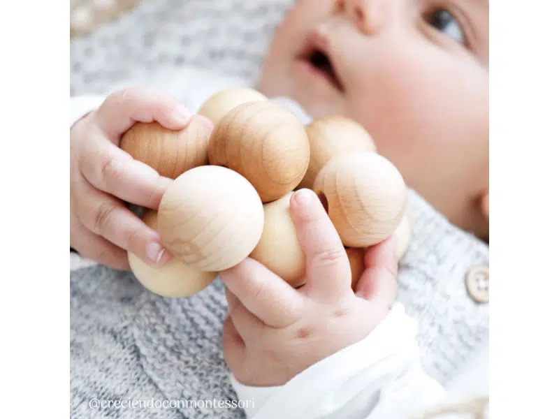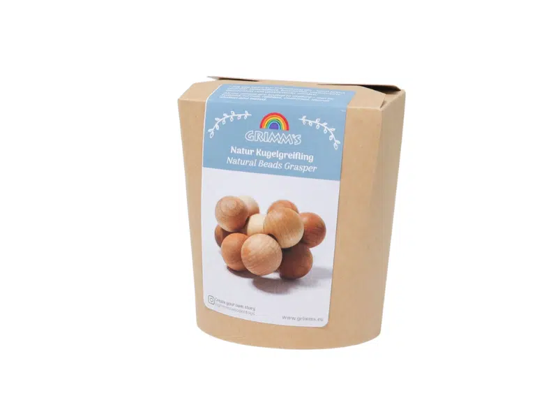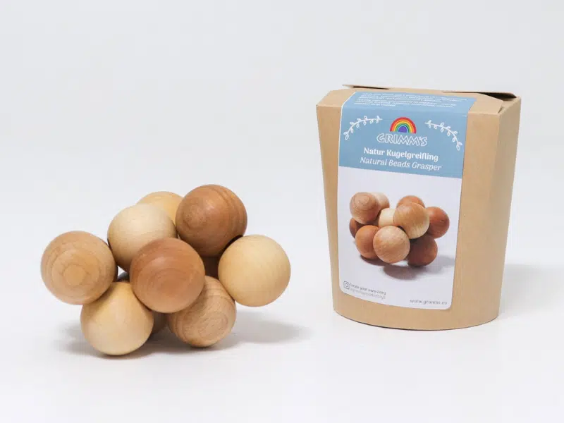 Le bracelet sensoriel de Grimm’s est composé de perles en bois naturel. Il est un jouet sensoriel parfait pour les bébés, mais peut également réconforter et répondre aux besoins sensoriels des grandes mains! Il est facile à attraper et les perles en bois offrent un contact sensoriel agréable. Il peut être tenu dans la main ou encore enfilé sur le poignet. Il constitue un objet agréable, autant visuellement qu’au toucher, avec les perles de bois lisses et les couleurs neutres et douces pour les yeux! Le bois étant un matériau naturel, il offre des expériences sensorielles variées. Le grain du bois et parfois plus clair ou plus foncé, dur ou mou, lisse ou rugueux. Le bois sent bon! Il crée des sons doux et agréables pour les oreilles fragiles, offre une certaine lourdeur et est agréable une fois dans nos mains grâce à sa chaleur et sa surface distincte. Utilisez le bracelet sensoriel comme ajout à vos objets sensoriels, afin d’offrir des stimuli variés et de permettre un certain apaisement à son contact. Utilisez-le pour vous déguiser, comme un bracelet! Sa conception ainsi que les matériaux utilisés en font un jouet merveilleux pour les poupons qui pourront l’explorer à leur façon: avec les mains dans la bouche ou au poignet. Il est sans danger pour les bébés et deviendra un compagnon parfait pour les périodes d’éveil, les sorties en voiture ou à l’épicerie.