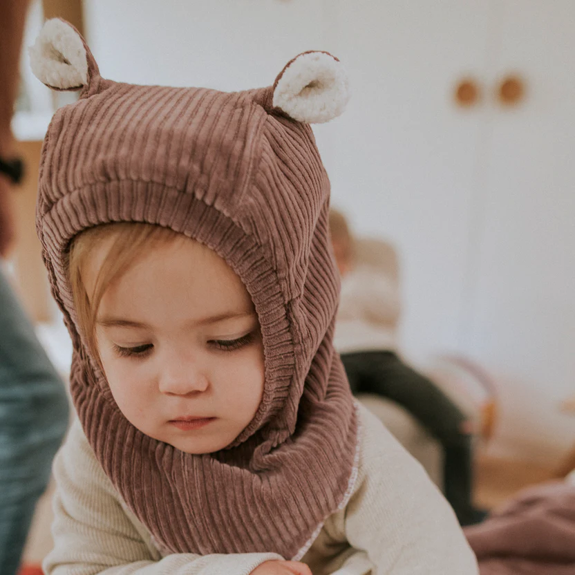 Enveloppez votre bébé dans une chaleur réconfortante avec notre cagoule en velours côtelé parme, entièrement doublée en teddy moelleux. Sa teinte vibrante apporte une touche de pep’s aux journées froides, tout en protégeant parfaitement les petites têtes.