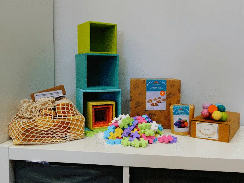 Le Coffret découverte Évolutif pastel, comme son nom le dit, évoluera à mesure que l’enfant se développe. Son contenu est sécuritaire dès la naissance, ce qui permet d’offrir du matériel aux poupons comme aux trottineurs. Les grands pourront même tirer profit du matériel de ce coffret en créant selon leur niveau de développement. Les différents items qui le composent sont offerts en couleurs douces, aux teintes pastel ou encore en version naturelle, ce qui offre du matériel de jeu coloré, mais juste assez! Vous y retrouverez une belle variété de matériel polyvalent pour découvrir, explorer, toucher et manipuler, pouvant tout aussi bien servir pour construire et créer, une fois que le tout-petit aura grandit un peu.