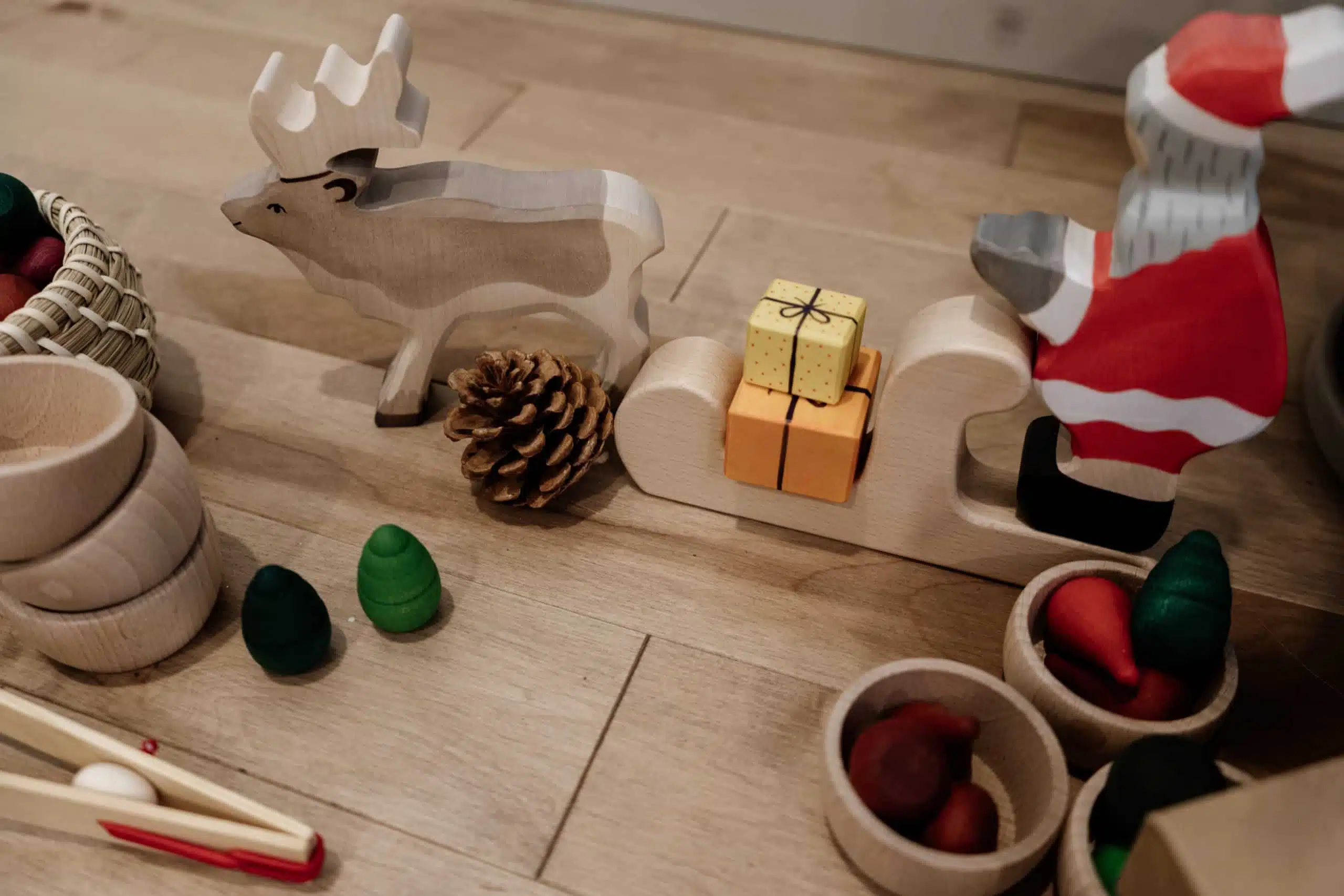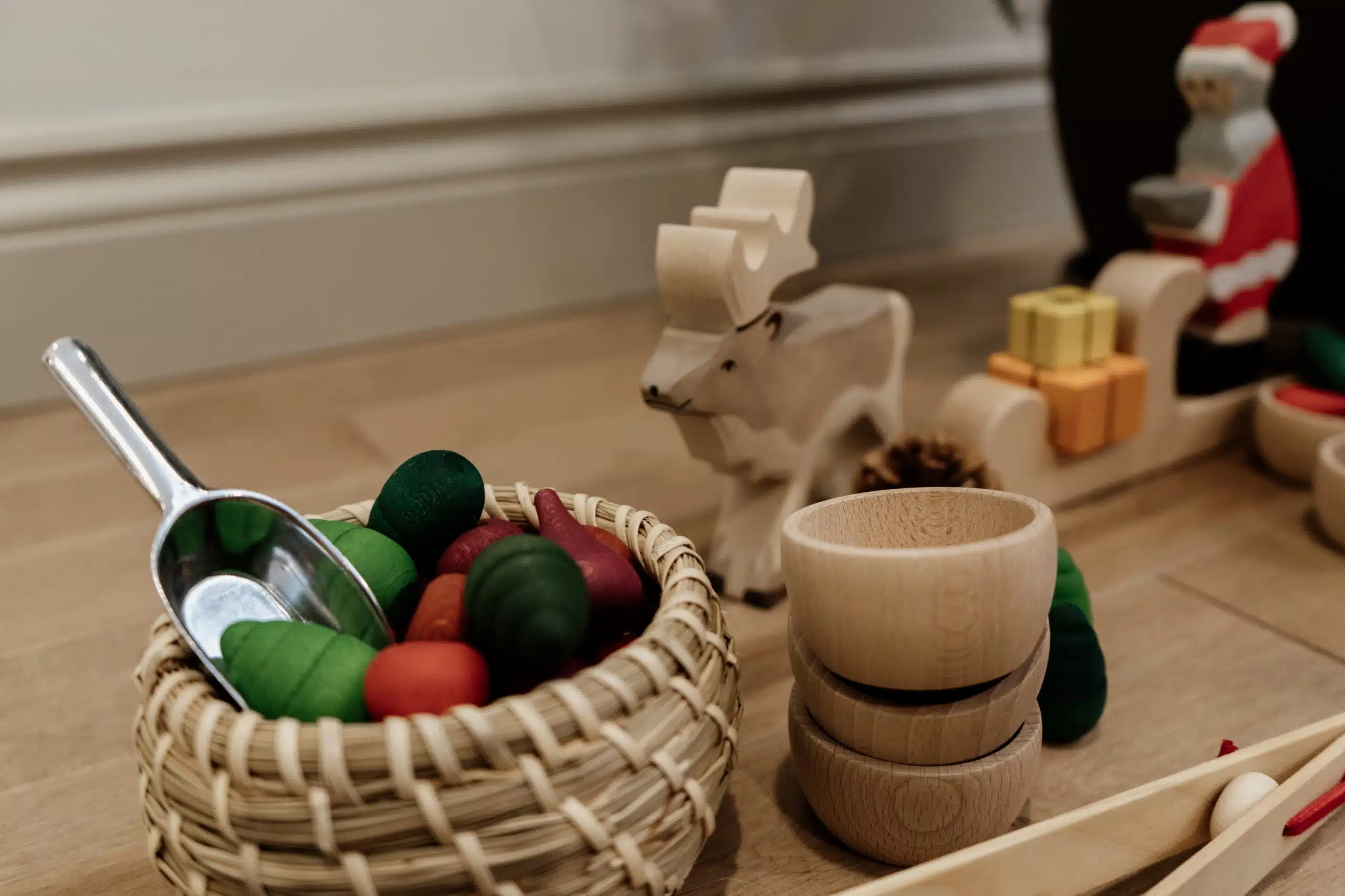 En attendant Noël, quoi de mieux que ce joli coffret festif, aux couleurs des fêtes! Les éléments de ce coffret peuvent très bien se retrouver dans un bac sensoriel, afin de répondre au besoin des enfants d’explorer à partir de leurs sens. Plongez-les dans des haricots blancs ou du riz, ou encore dans des pompons. Les enfants prendront plaisir à imaginer des scénarios, à créer et à manipuler en attendant la venue du Père Noël!