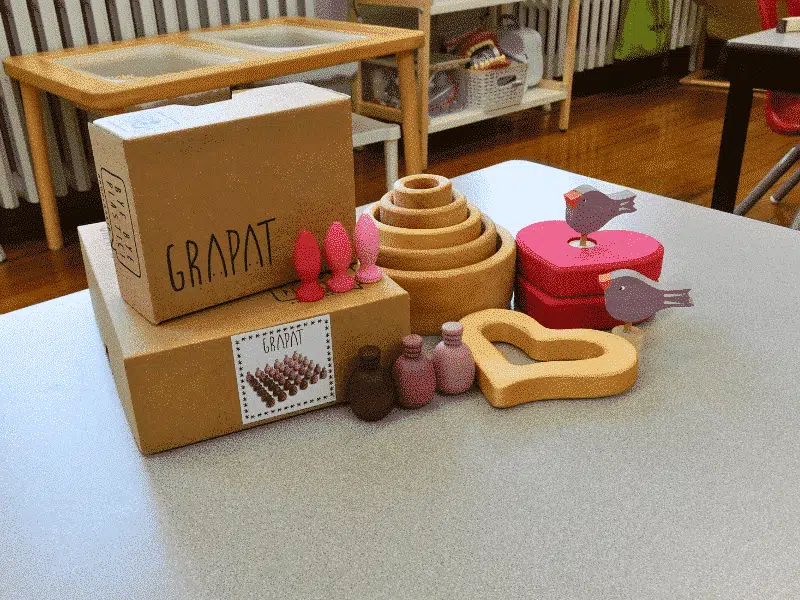 En attendant la St-Valentin, quoi de mieux que ce joli coffret aux couleurs de l’amour! Les éléments de ce coffret peuvent très bien se retrouver dans un bac sensoriel, afin de répondre au besoin des enfants d’explorer à partir de leurs sens. Plongez-les dans des haricots blancs, du riz ou encore dans des pompons. Les enfants prendront plaisir à imaginer des scénarios avec les oiseaux, à créer et à manipuler en attendant la fête de la St-Valentin! Les enfants prendront plaisir à remplir les bols avec les mandalas de Grapat, à les trier ou encore à les partager.