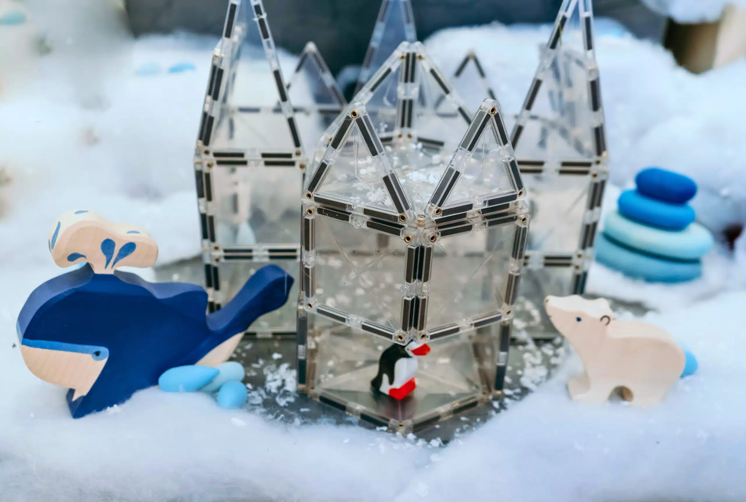 Au Québec, nous avons le bonheur de vivre les 4 saisons! Quand on pense à l’hiver, on pense à la neige et aux merveilleux paysages blancs que ça crée. Raquette, ski, planche à neige, glissade ou patin à glace, les sports d’hiver sont bien présents chez nous. Ce coffret polaire vous permet d’amener une touche hivernale dans l’environnement de jeu des enfants, avec ces teintes de bleu et de blanc!