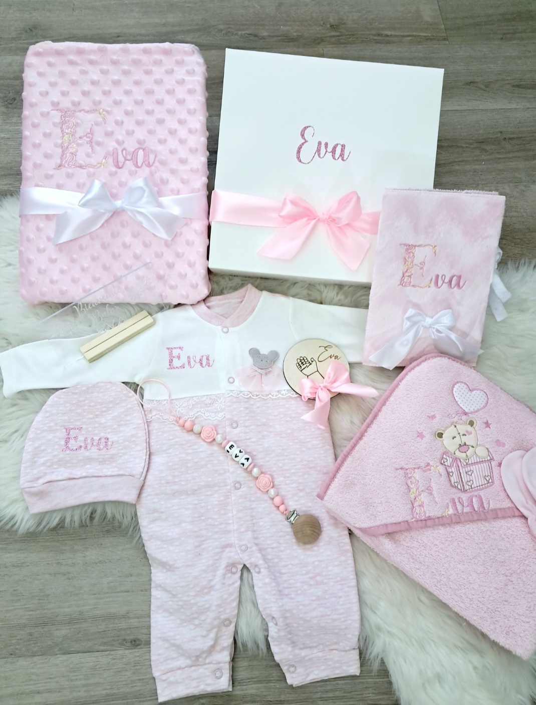 La personnalisation d’un prénom est gratuite pour chaque article. Composition du coffret: