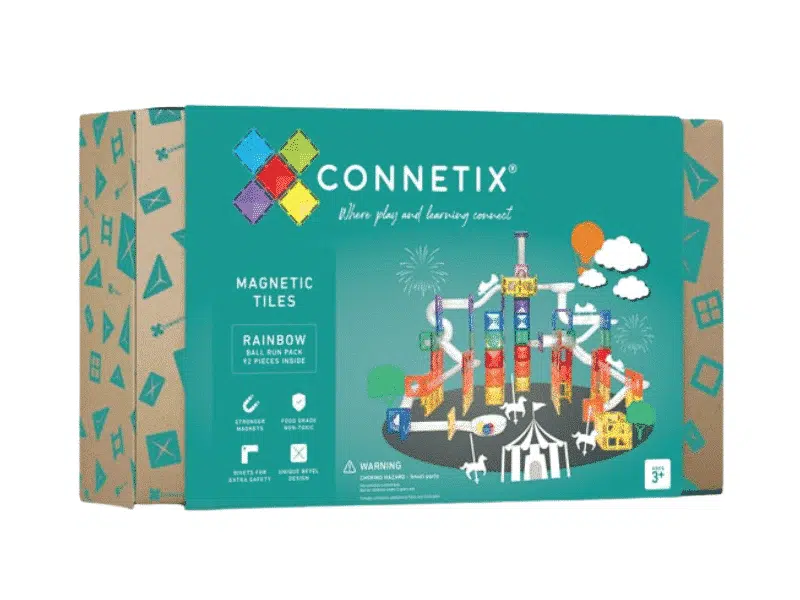En tant que jouet de qualité ouvert, Connetix grandira AVEC votre enfant au fur et à mesure qu’il apprendra et que son jeu deviendra plus complexe. Les tuiles magnétiques sont solides et permettent de belles constructions. Développez votre collection et complétez votre ensemble Créatif avec un ensemble de parcours de balles.