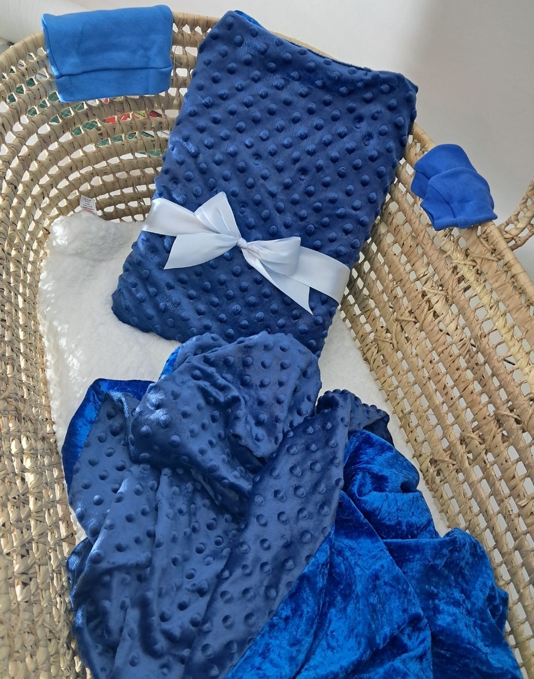Couverture personnalisée bleu. La couverture Minky est idéal pour votre bébé. Elle peut être utilisé pour couvrir la poussette, landau ou décorer le lit de bébé. Dimension de la couverture: 75×100. La broderie d’un prénom est inclus. Lavage à 30 degrés. Sèche-linge déconseillé.