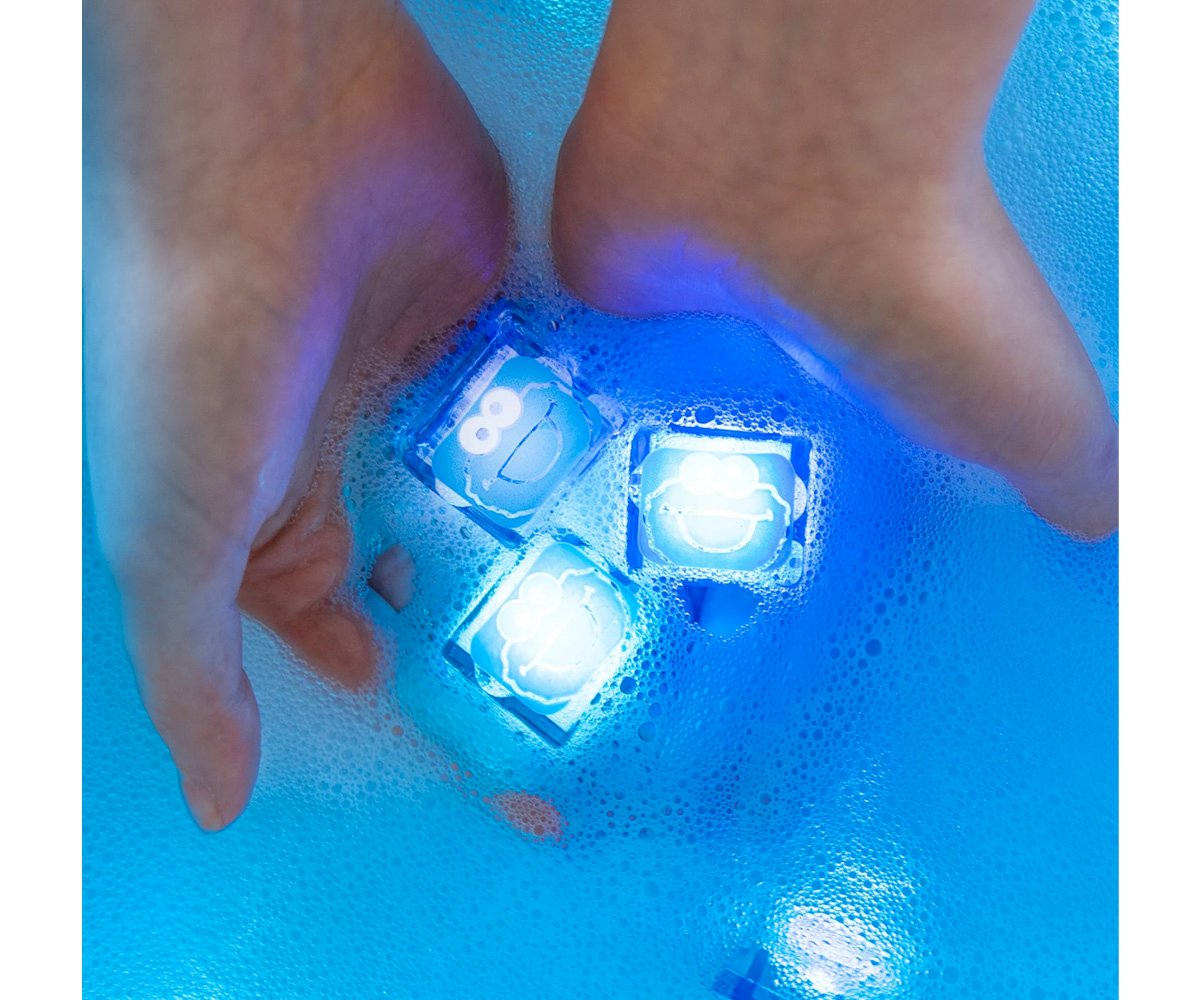 Les cubes lumineux les plus originaux de Glo Pals à l’éffigie du Cookie Monster. Mettez-les dans l’eau et vous les verrez s’illuminer en bleu. Le meilleur accessoire pour que l’heure du bain soit encore plus amusante! CARACTÉRISTIQUES Matériau : Plastique Dimensions : 14 x 4 x 2 cm Comprend : 4 cubes Cookie Monster Entretien : Soufflez à travers les petites fentes situées sur le côté de chaque cube à chaque fois que vous avez fini de jouer Il est recommandé de les ranger dans un endroit sec pour prolonger la durée de vie de la batterie Chaque cube dure…