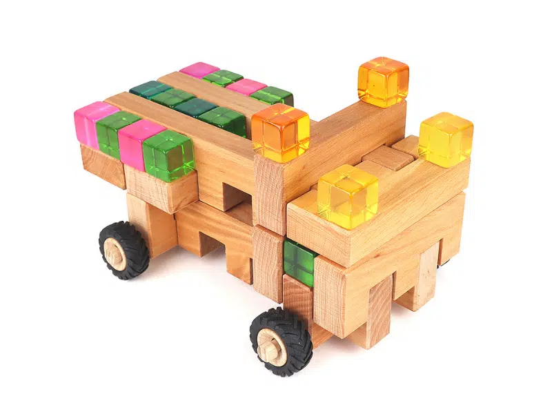 Ce magnifique ensemble de cubes transparents de Bauspiel contient 100 morceaux (10 couleurs, 10 blocs par couleur). À utiliser dans des bacs sensoriels, dans des univers féériques ou pour rehausser les constructions et faire des jeux de lumière (table lumineuse, lampe de poche, etc.). Combinez-les aussi aux autres produits Bauspiel pour des possibilités sans fin […]