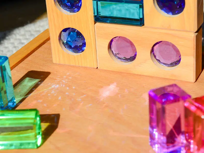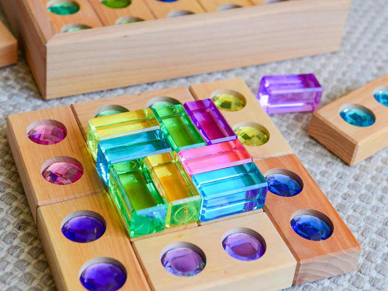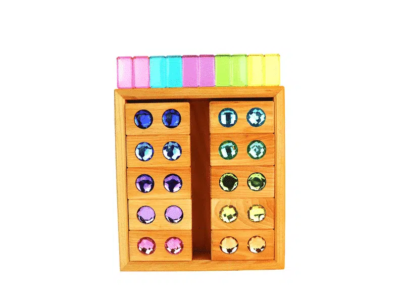 Tombez sous le charme de ce somptueux ensemble de diamants et des cubes transparents avec teintes pastel de 30 morceaux de Bauspiel. à utiliser dans des bacs sensoriels, dans des univers féériques ou pour rehausser les constructions.