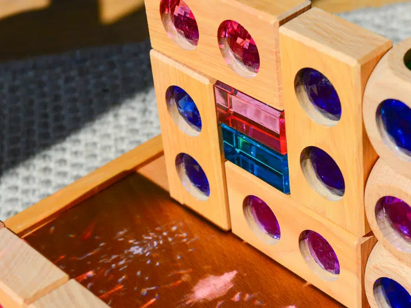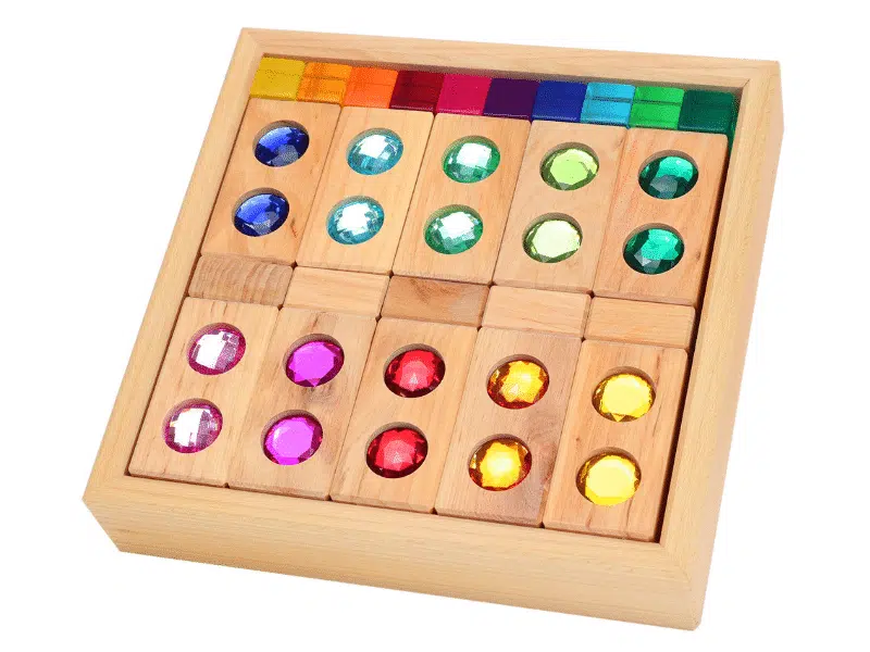 24 Anneaux de construction arc-en-ciel en bois – Grimm’s