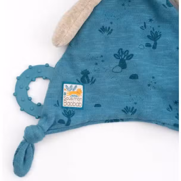 A offrir dès la naissance, ce doudou possède de longues pattes fines et deux nœuds en tissu aux extrémités, adaptées aux petites mains de bébé qui pourront l’attraper et le manipuler facilement. Il est également doté d’une attache-tétine afin de toujours garder près de votre enfant sa sucette et éviter ainsi de la perdre.