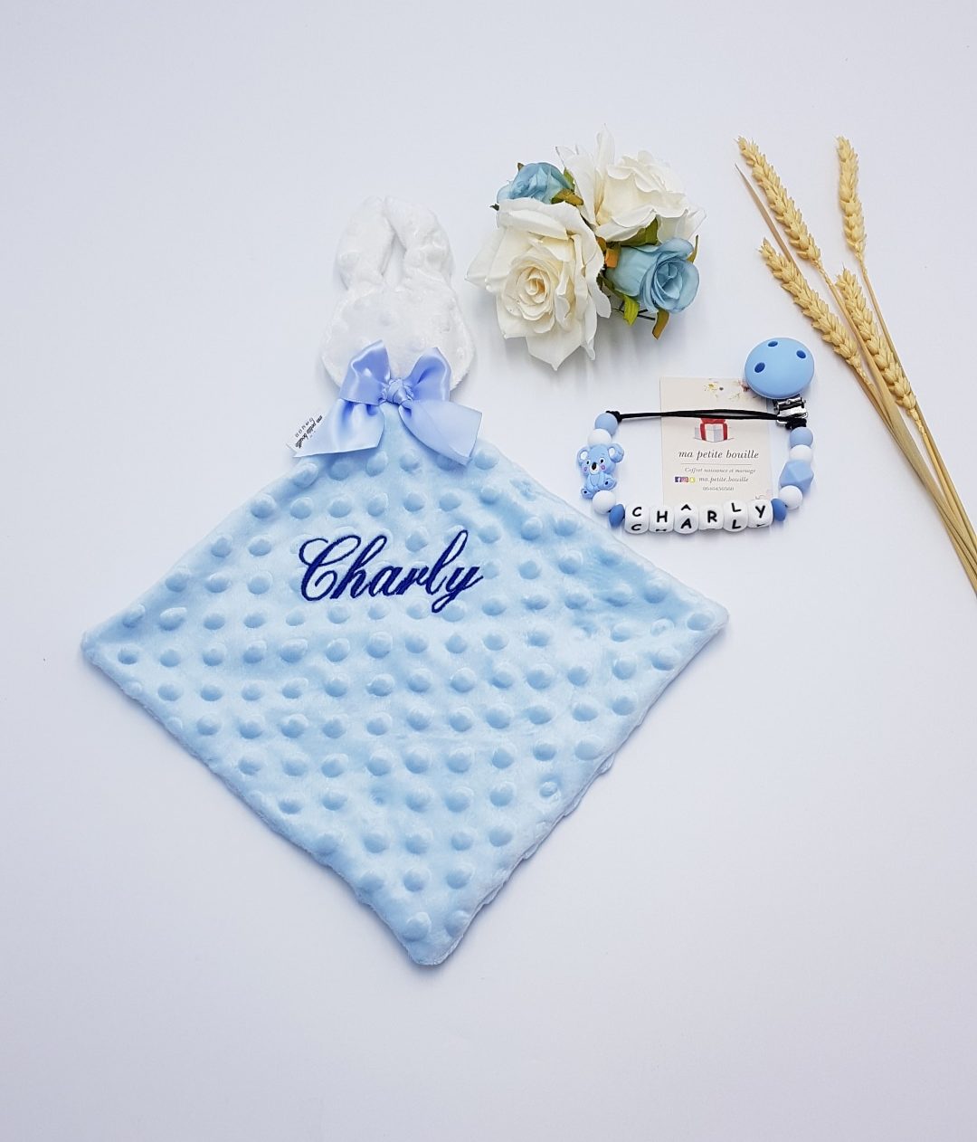 Doudou plat fait main dans notre atelier en Ile de France., une création unique pour un bébé unique.