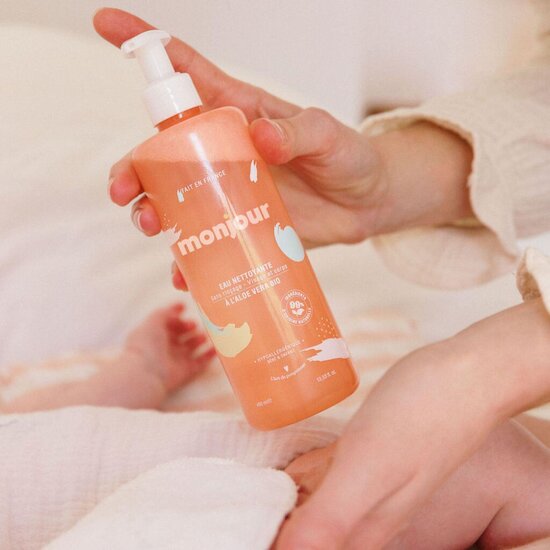 Idéale pour nettoyer en douceur la peau délicate des tout-petits dès la naissance. Sans rinçage, enrichie en aloe vera, sa formule apaise et hydrate tout en procurant une sensation de fraîcheur immédiate. 99 % d’ingrédients d’origine naturelle Hypoallergénique Testée sous contrôle dermatologique Fabriquée en France Notée 100/100 sur Yuka