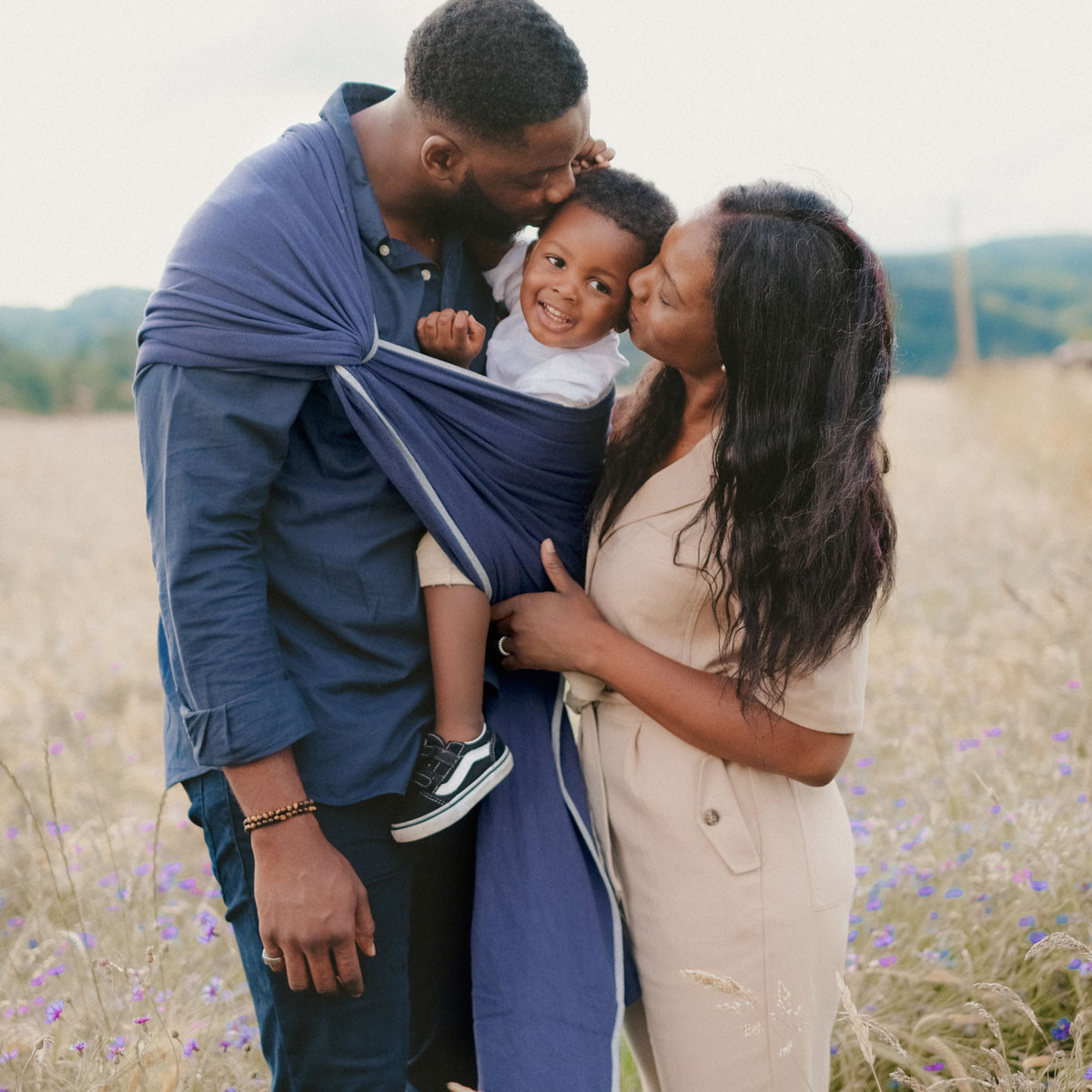 Porter son bébé permet de répondre à ses besoins naturels. L’écharpe offre un maintien parfait dans le confort et la sécurité. Bercé, bébé découvre le monde bien installé contre ses parents en toute sérénité .