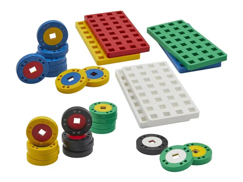 - 6 plaquettes de base: 2 blanches, 1 verte, 1 jaune, 1 bleue et 1 rouge