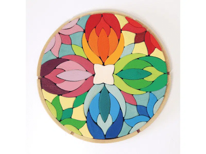 Cet grand ensemble de construction Lara comprend 73 blocs et rappelle le printemps, l’amour et les fleurs! Créez des mandalas, des tours, des constructions, des motifs floraux…Les possibilités sont infinies! Ajoutez le plateau à un décor de chambre ou de salon et laissez la magie opérer… De grandes constructions en émergeront! Les couleurs sont d’ailleurs à couper le souffle!