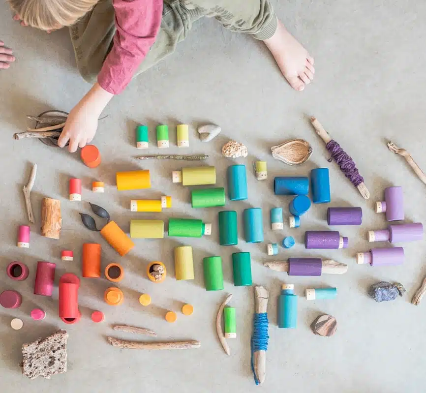 24 Anneaux de construction arc-en-ciel en bois – Grimm’s