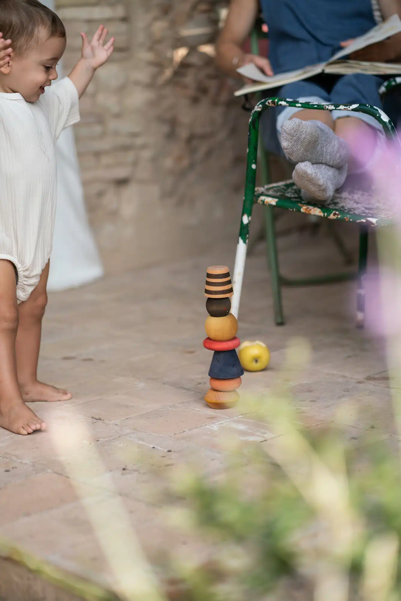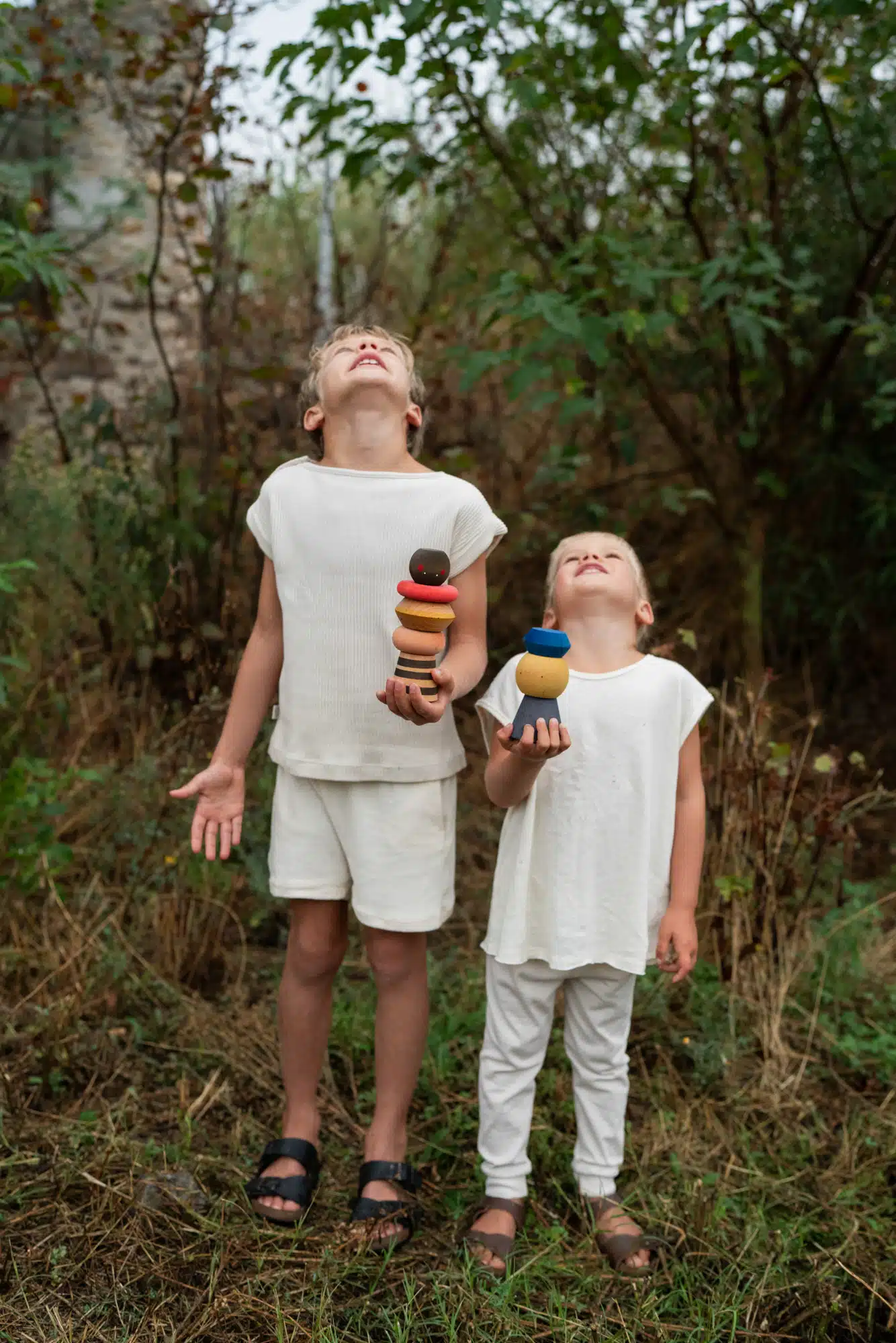 L’ensemble « Serendipity » contient 8 pièces aux formes, tailles et couleurs variées. Il permet des combinaisons infinies pour jouer de mille et une façons différentes! Plein de couleurs et magnifiquement fabriqué à la main, chaque association est amusante et crée quelque chose de satisfaisant! Avez-vous vu les petits yeux sur certaines pièces? N’hésitez pas à les utiliser pour créer des visages et des personnages! Ce matériel polyvalent a été conçu afin de permettre aux petites mains d’empiler, de superposer et de créer à leur guise, selon l’inspiration et les besoins du moment. Ils pourront donc choisir d’en faire de petites tours ou alors une seule bien haute, des personnages ou encore une construction tirée leur imaginaire! Les enfants pourront s’éveiller aux sciences avec ce matériel qui représente bien l’approche STEM (ou STIM), mettant de l’avant l’expérimentation et la manipulation de matériel varié pour s’amuser, expérimenter, faire des découvertes, se donner des défis, trouver des solutions et plus encore!