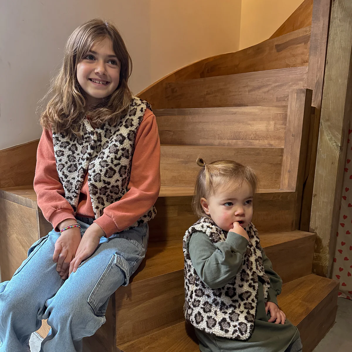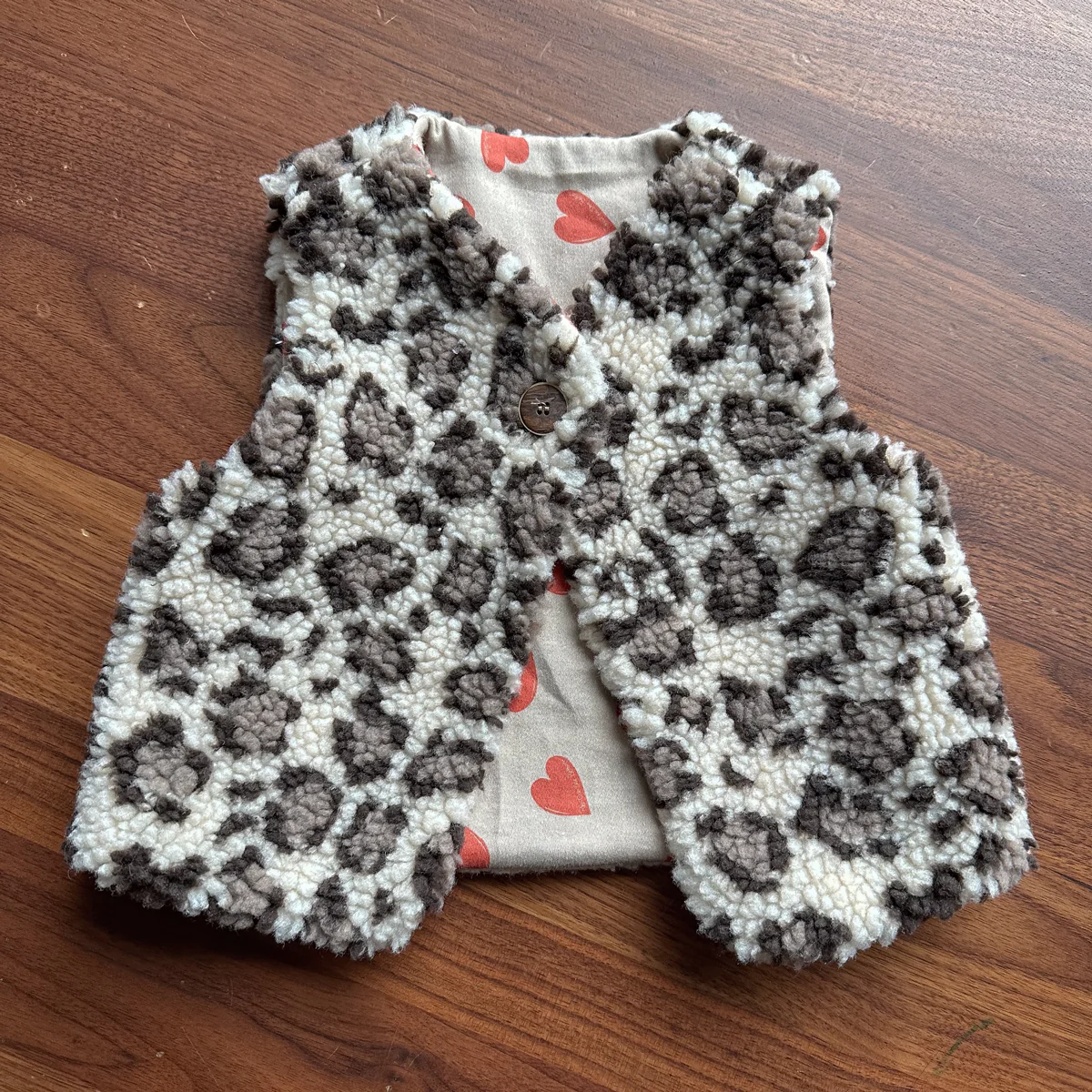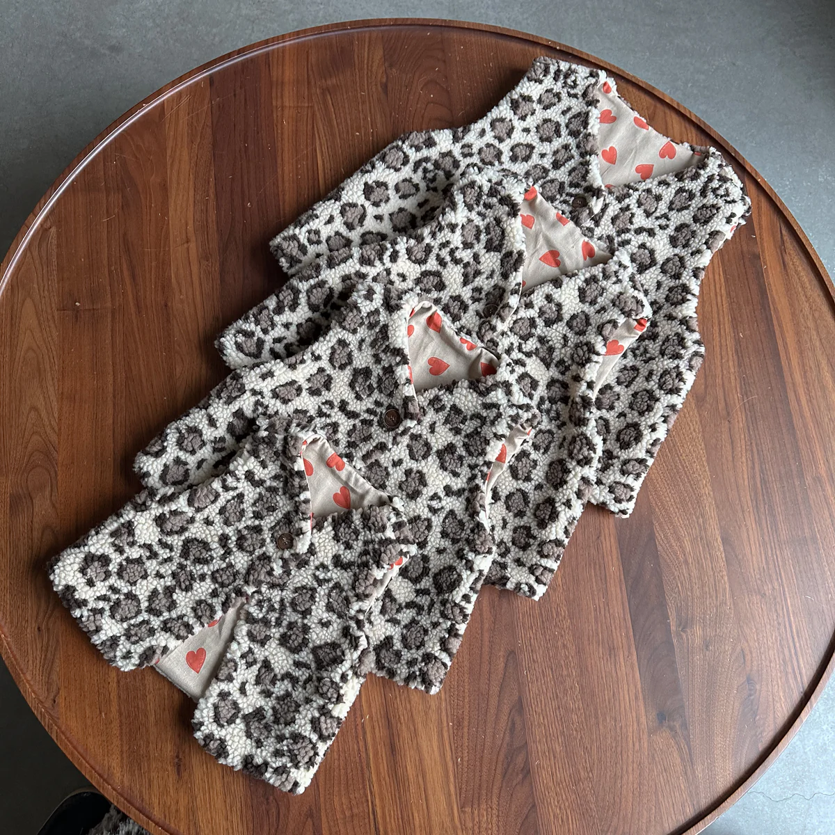 Gilet Sans Manches Teddy Léopard Craquez pour notre gilet sans manches Teddy léopard, un incontournable pour un look tendance et cosy ! Conçu pour apporter une touche de style et de confort, ce gilet est parfait pour les petits comme pour les grands. Avec son motif léopard ultra-moderne et sa doublure douce avec notre imprimé cœur exclusif, il devient l’accessoire idéal pour toutes les saisons.