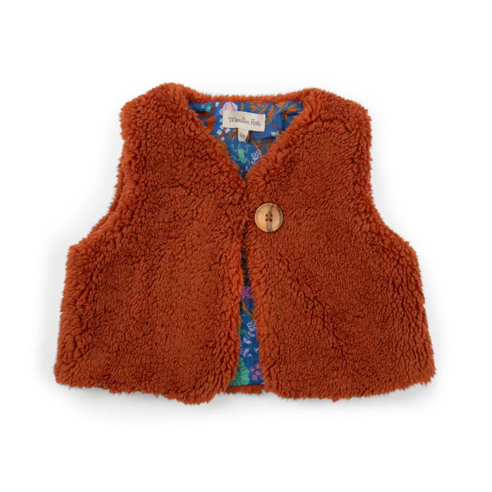 Gilet Sherpa rouille Mélina, la jungle merveilleuse Moulin Roty