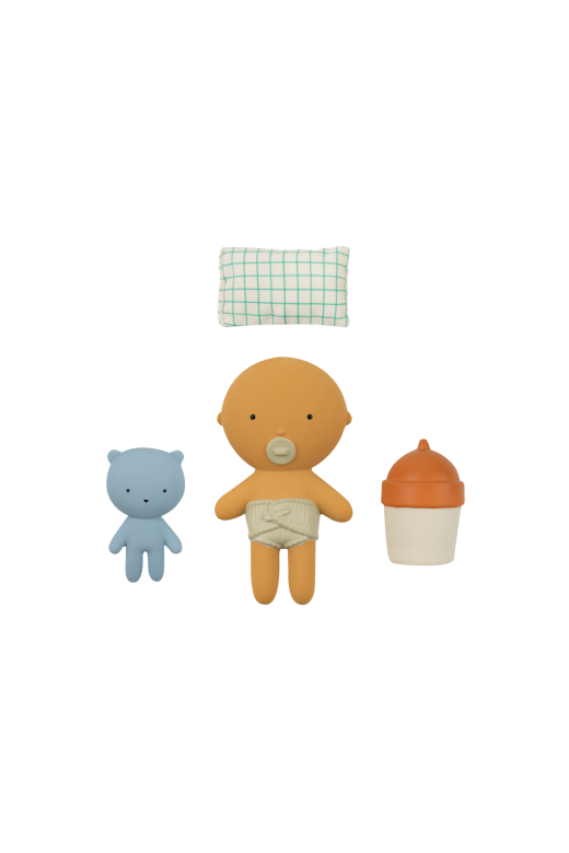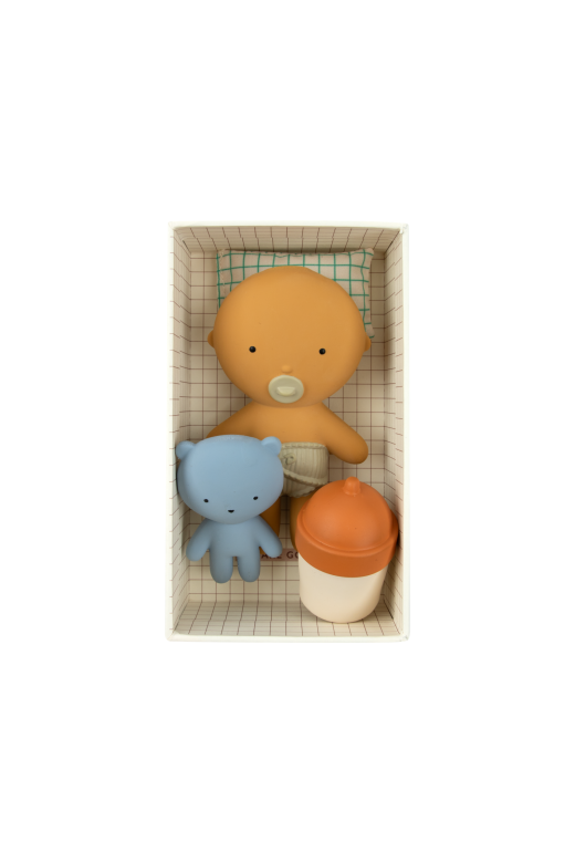 Gommu pocket est une adorable mini poupée conçue en cachous naturel et peinte à la main avec des pigments non toxiques. Taille parfaite pour les petites mains, elle accompagne les enfants dans leurs jeux Sa texture douce, légèrement souple, stimule le toucher tandis que son format compact la rend facile à emporter partout Dimensions : bébé 10 cm, ours 6 cm, biberon 5 cm Chaque pièce est unique en raison d’une fabrication à la main.Couché dans sa jolie boîte en carton, ce bébé est installé confortablement sur un oreiller en coton biologique 100% caoutchouc naturel , peinture non toxique