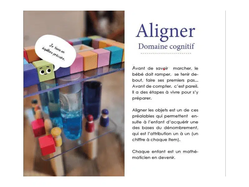 Ce livre est en fait un guide qui répond à la question: « Que font les enfants avec du matériel libre et polyvalent? ». Vous y retrouverez, au fil des pages, diverses actions que les enfants pourront effectuer lors de leurs périodes de jeu et en manipulant ce type de jouets. Vous retrouverez sur chaque page un petit cube qui se retrouvera sur des photos et qui vivra lui-même ces actions, tout en émettant des petits commentaires, ce qui rend le livre dynamique et ludique. Dans cet ouvrage, vous découvrirez plein de propositions de matériel à ajouter à l’espace de jeu des enfants afin de faire évoluer leurs jeux et de les aider dans leur développement, toujours à travers le jeu!
