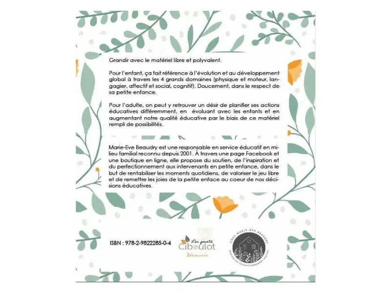 Ce livre est en fait un guide qui répond à la question: « Que font les enfants avec du matériel libre et polyvalent? ». Vous y retrouverez, au fil des pages, diverses actions que les enfants pourront effectuer lors de leurs périodes de jeu et en manipulant ce type de jouets. Vous retrouverez sur chaque page un […]