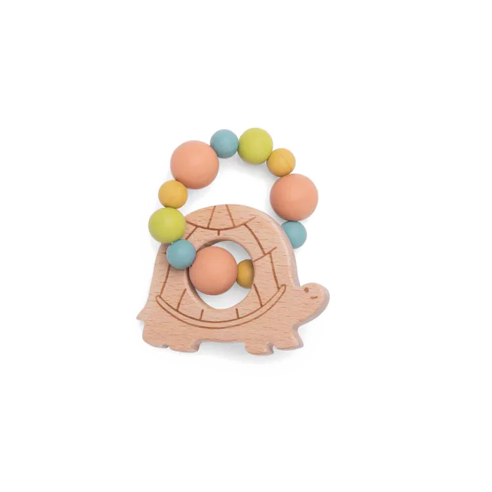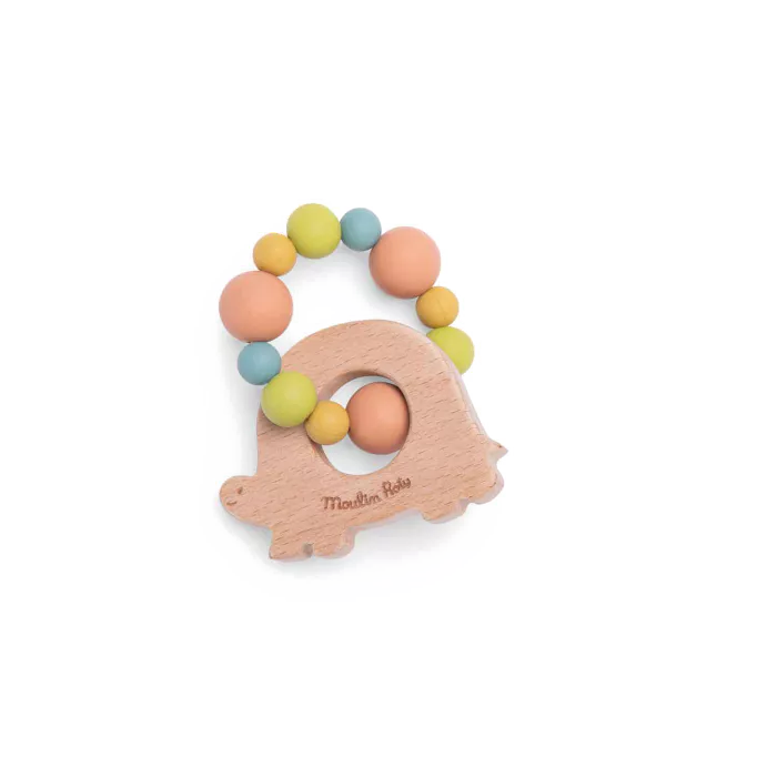 Hochet anneau de dentition bois et silicone Tortue | Trois petits lapins