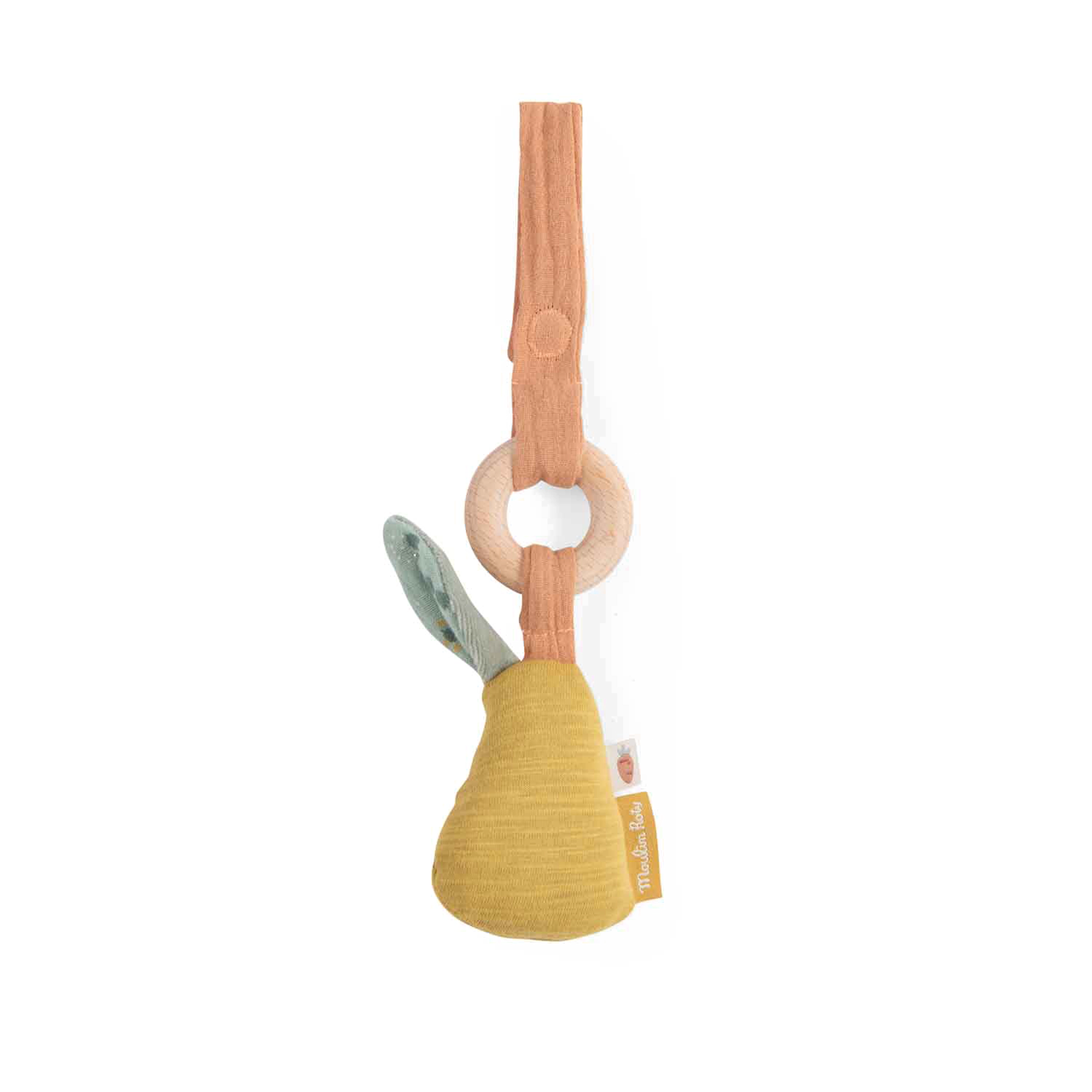 Le hochet poire tris petit lapin avec anneau en bois naturel, léger et adapté aux petites mains. En matières toutes douces, il émet un joli son de grelot lorsque bébé le secoue et un bruit de papier froissé. Peut être suspendu partout grâce à son attache velcro.