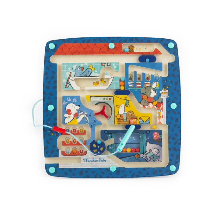 Grâce au crayon aimanté, déplacez les éléments magnétiques à travers le parcours d’obstacles pour aider les billes colorées à trouver leur chemin. Ce labyrinthe est idéal pour apprendre à compter et découvrir les couleurs en s’amusant avec Puce & Pilou