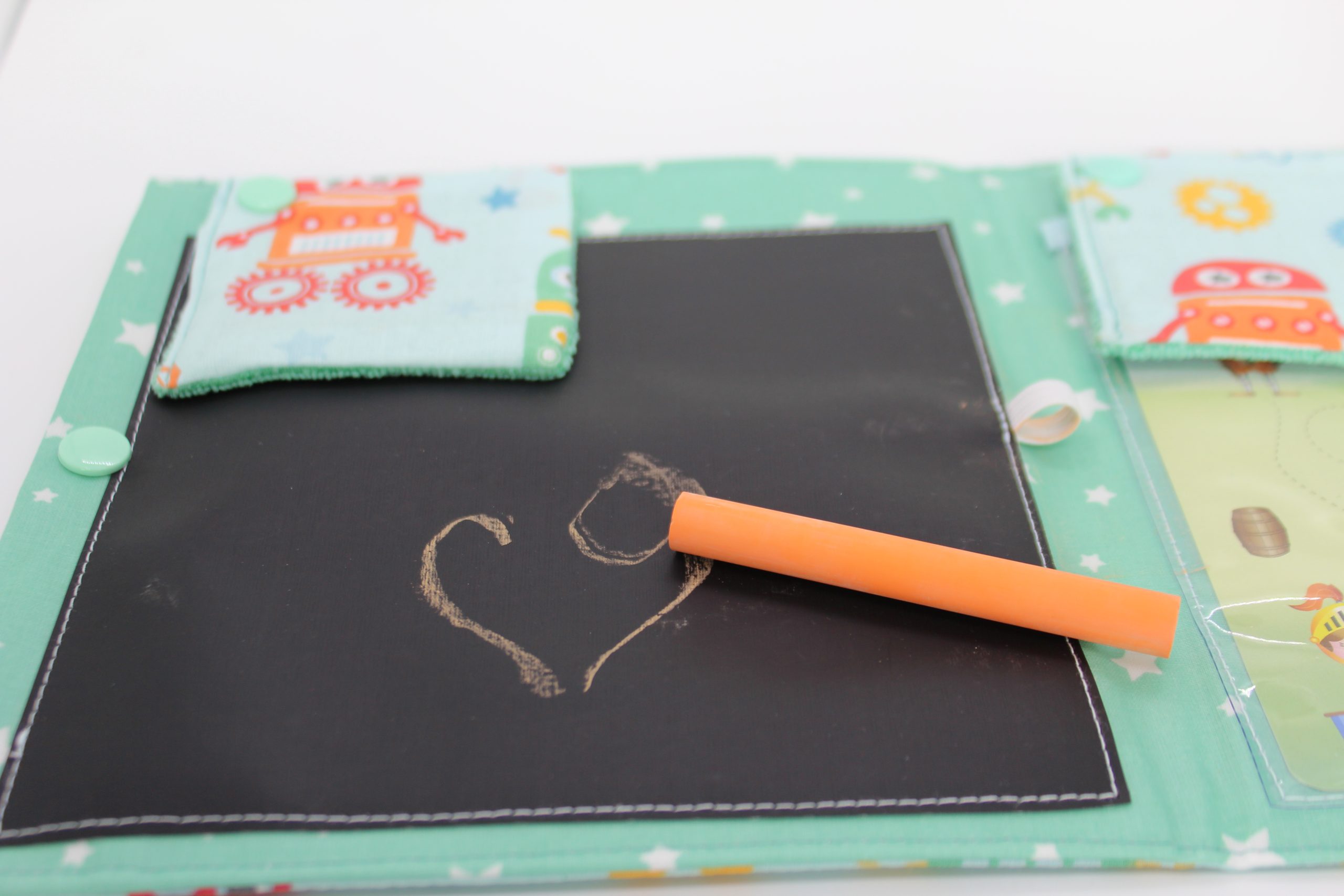 Ardoise textile, souple, lavable et solide.