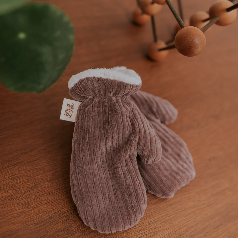 Gardez les petites mains de bébé bien au chaud cet hiver avec nos moufles en velours côtelé parme, entièrement fabriquées à la main dans le Nord de la France. Conçues avec des matériaux certifiés OEKO-TEX, elles sont douces, sûres et parfaites pour les peaux sensibles.