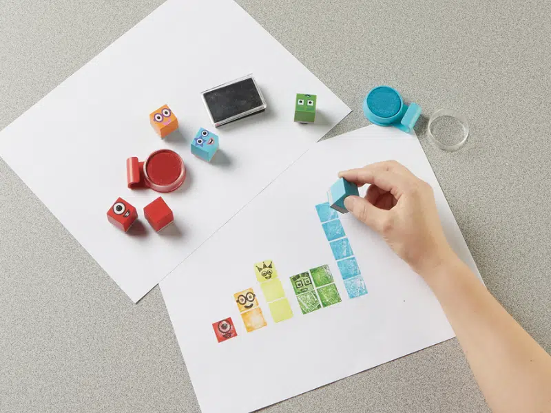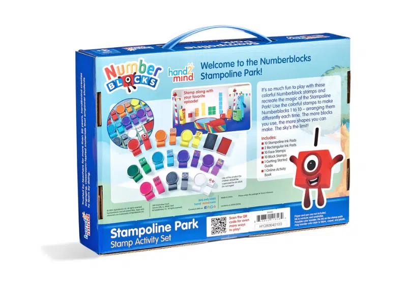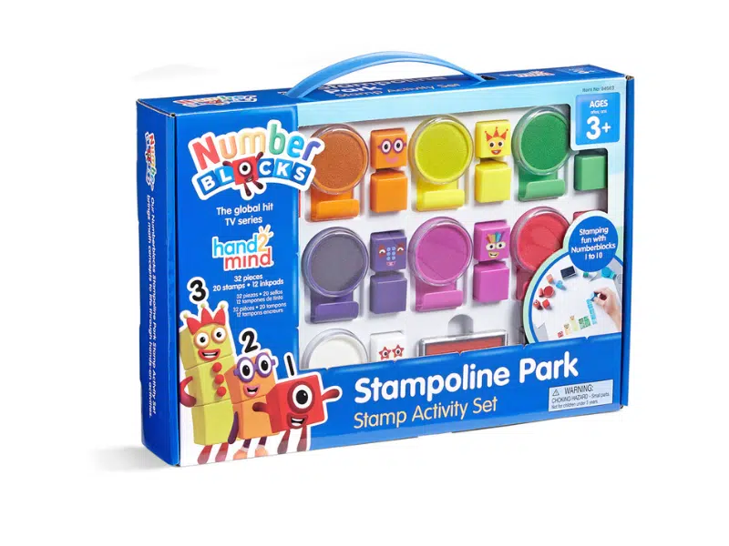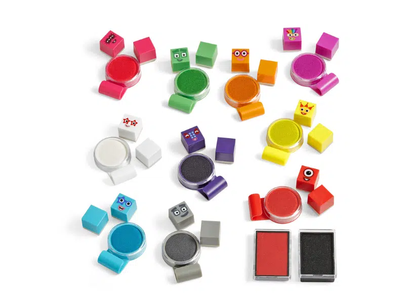 Cet ensemble étampes »Stampoline Prk » de Numberblocks invite à l’art et à l’imagination grâce à des tampons réutilisables et des encres colorées inspirées des Numberblocks. Parfait pour les activités à la maison, en garderie ou en classe, ce lot comprend 20 tampons en caoutchouc représentant les Numberblocks de 1 à 10, chacun avec une face amusante et un carré vierge à personnaliser. Les enfants peuvent aussi créer des expressions uniques grâce aux grands tampons encreurs rouges et noirs.