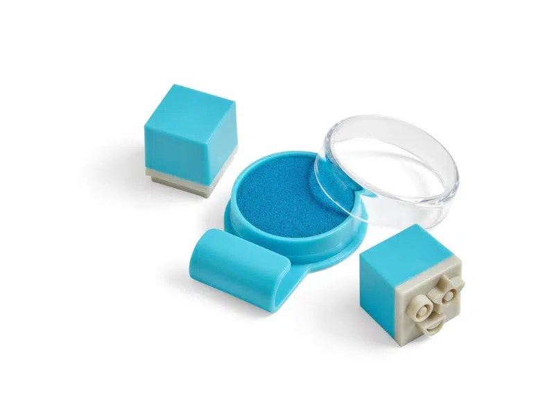 Les tampons réutilisables se nettoient aisément après chaque utilisation. Tout le matériel se range dans une boîte solide avec poignée, ce qui permet de transporter et d’organiser le kit sans effort.