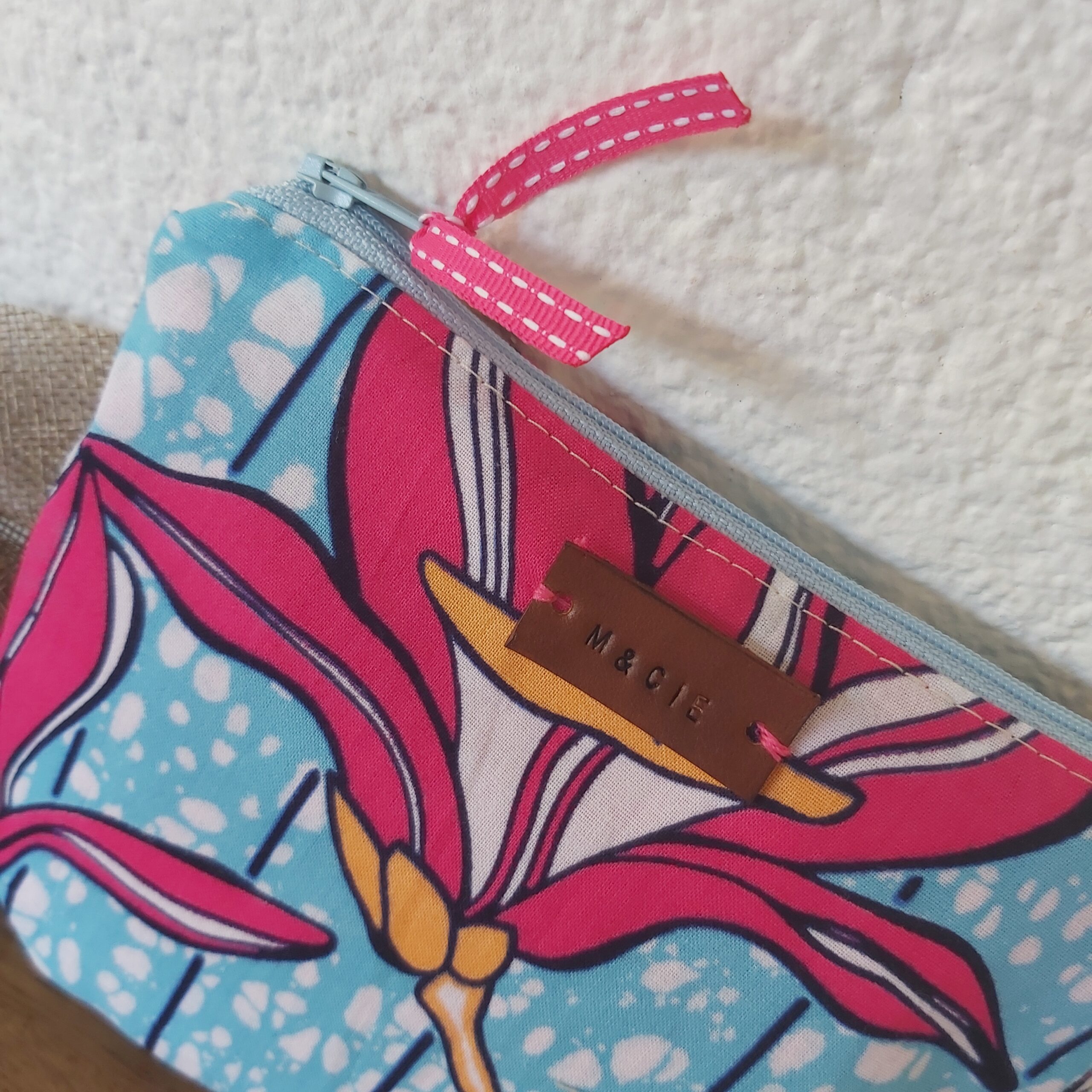 Une bien jolie petite pochette qui fait tout son effet et qui trouvera facilement sa place dans votre sac ! Wax et cotonnade. Fermeture zippée et son ruban. Dimensions : 17×12 Entretien : Lavage à la main.