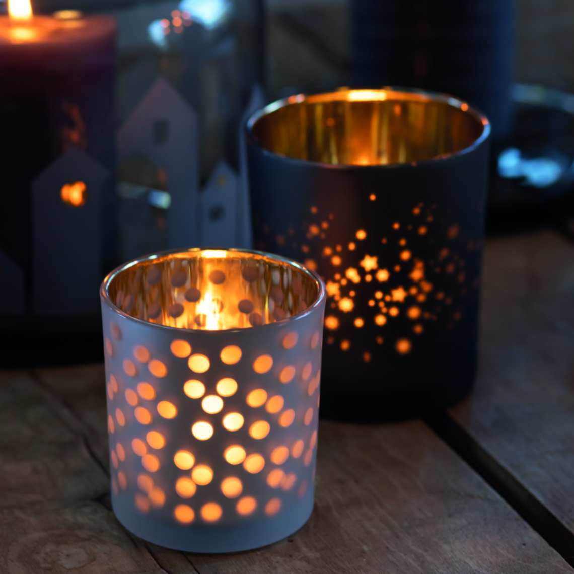 Craquez pour ces jolis photophores en verre, qui donneront une ambiance très chaleureuse à votre intérieur !